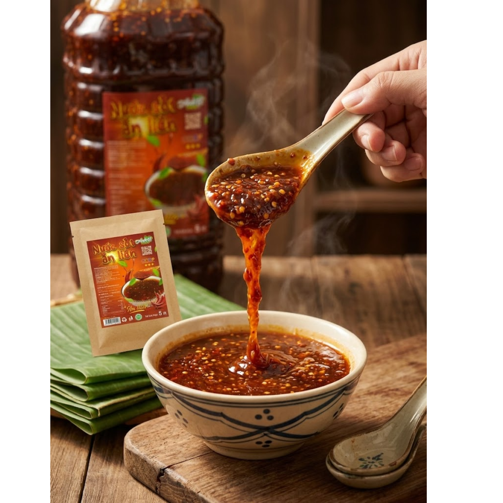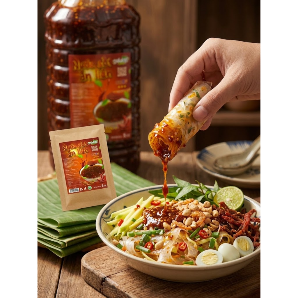 Hương Vị Đặc Trưng – Chuẩn OCOP 3 Sao: Sự kết hợp tinh tế giữa vị cay nồng của ớt, thơm của tỏi và độ sánh quyện đậm đà. Sốt mang hương vị đặc trưng của đặc sản Tây Ninh, giúp nâng tầm các món bánh tráng trộn, bánh tráng cuốn lên một đẳng cấp mới.