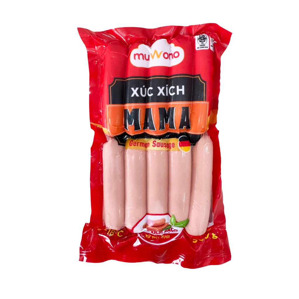 Xúc xích MAMA Muwono là dòng xúc xích cao cấp được chế biến từ thịt heo tuyển chọn, kết hợp cùng gia vị đặc trưng, mang đến hương vị thơm ngon, béo ngậy và dễ ăn. Sản phẩm được đóng gói tiện lợi 500g (10 chiếc), phù hợp cho gia đình, quán ăn vặt, nhà hàng và căng tin.